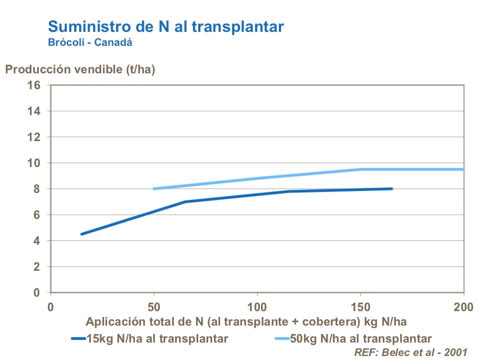 Una fertilización nitrogenada tambien mejora el color del cultivo y reduce la incidencia de cabeza marrón en brócoli, así mejorando la comerciabilidad.