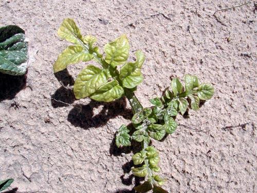 La visualización de la deficiencia de molibdeno en papas depende del nivel del micronutriente dentro de la papa semilla. Si la semilla proviene de suelos sin molibdeno (como suelos de pH bajo), las hojas jóvenes se quedarán de color verde pálido y luego se desarrollarán manchas cloróticas. Se pueden corregir las deficiencias con aplicaciones foliares de molibdeno.
