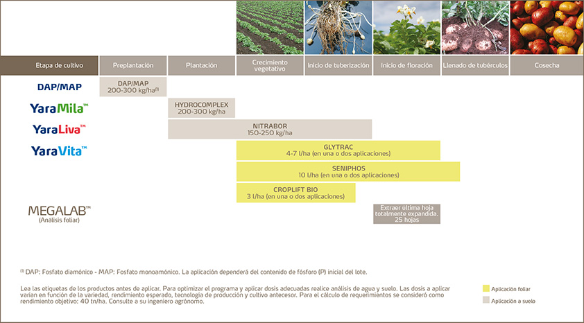 Los programas de fertilización de Yara podrán ayudarle en obtener un mejor desempeño de su cultivo. Conocé nuestros programas de fertilización para papa consumo y papa semilla, específicos para cada objetivo.